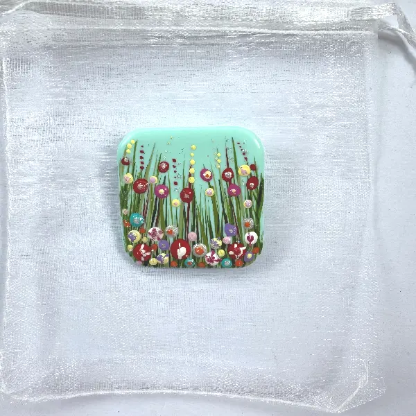 Turquoise Square Flower Meadow Brooch